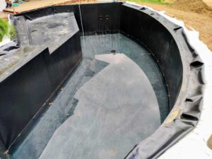 Při realizacích používáme jako hydroizolační materiál fólie z měkčeného PVC různých typů – pro jejich výrazně lepší užitné vlastnosti ve srovnání s jinými materiály.